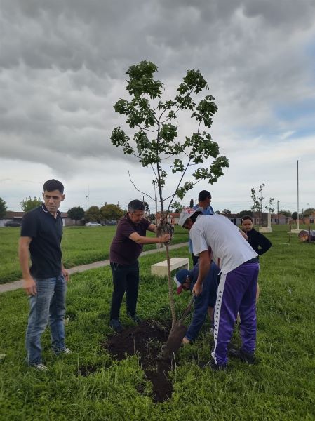 El Centro Cultural Don Cipriano celebró el Día de la Lealtad Peronista con una jornada de plantación de árboles en la Plaza Juan Domingo Perón