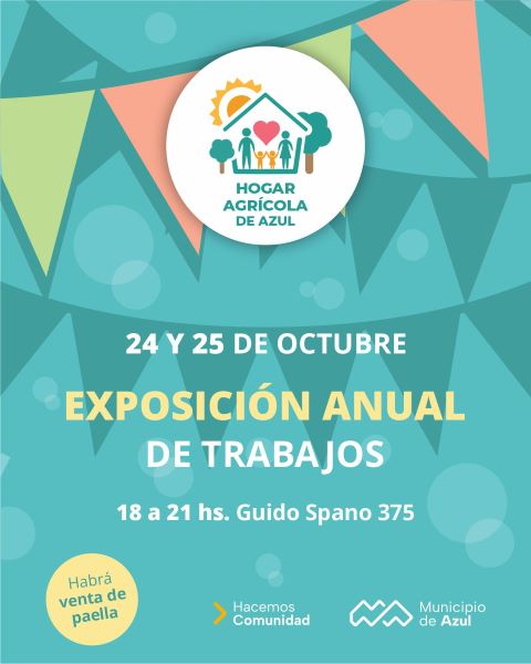 El Municipio de Azul informa que este viernes 24 y el sábado 25 se realizará la exposición anual del Hogar Agrícola de nuestra ciudad