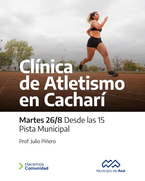El Municipio de Azul invita a la comunidad de Cacharí a participar de una clínica de atletismo que se desarrollará el martes 26 de agosto, a partir de las 15, en la Pista Municipal.