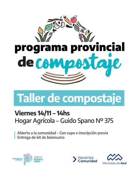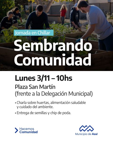 El Municipio de Azul informa que este viernes se llevará a cabo una jornada de actividades ambientales en el Hogar Agrícola, ubicado en Guido Spano 375.
